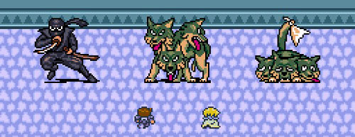 The battle system is exactly what you’d expect from a classic-style Final Fantasy game. Upon entering an encounter, you can decide to Battle or Run. Basic Battle commands are Attack, Spell, Item and Defense. You have the option of either controlling your companion or let the computer make their commands for them. Only three enemies at a time can be fought, making battles very fast. Spells are found rather than learned, and since there is no MP, each level of spells can only be used a certain number of times until they are replenished. Your basic attacks with weapons are usually enough to finish off most enemies, but I found spells to be the most effective when attacking multiple enemies at once, and of course for boss battles.