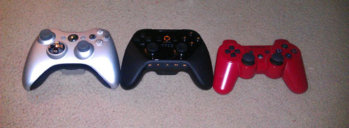 You look at the controller though, and it gives off bad vibes. Aesthetically it looks like a third party controller you’d buy for your PS3 or PC that is both a game controller and a multimedia remote wrapped up into one package. However, its build quality is superb. It has a nice weight to it, and all the buttons, triggers and pads just feel solid. I should note that the OnLive MicroConsole fully supports most USB keyboards, mice, USB hubs and various other third party controllers, including the XBox 360 controller. Check it out below. I lined it up with the 360 and the PS3 controller for quick comparison shot.