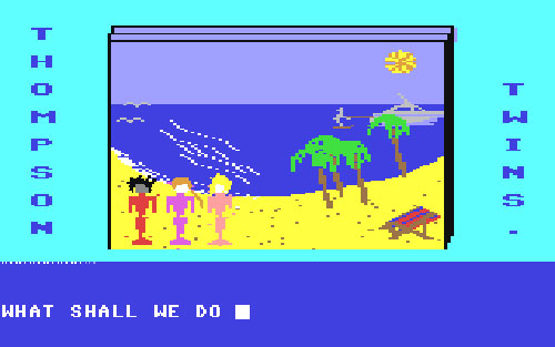 The year after Journey: The Arcade Game first emerged, The Thompson Twins Adventure released. In this graphical text adventure for the ZX Spectrum, you accompany the group, whom you may remember for the hit “Doctor! Doctor!”, on a quest to, well, find a doctor. Why exactly do they need a doctor? According to a few online sources, it’s never actually stated, though it appears to involve hallucinations. Why are they hallucinating? Judging from a few photos of the way the Thompson Twins dressed, it appears to involve drugs.